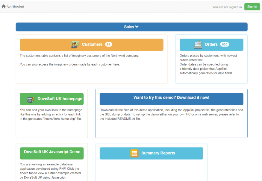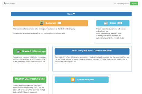 Below is a screen shot of the Dovesoft UK demonstration database. The database is based on the Microsoft Access Northwind database. Click here to visit
